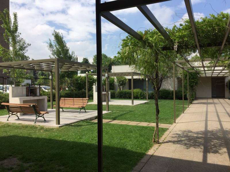 Condominio: amplios jardines con juegos infantiles, piscinas, quinchos, salón multiuso, gimnasio, lavandería, accesos controlados con portería 24/7 y cámaras de seguridad.